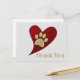 Say thank you to your dog walker, pet sitter, or veterinarian with this inexpensive postcard. This card features a gold glittery paw print in the centre of a bright red heart. The heart features an elegant curve and a painted red texture. The back offers plenty of room to add photos and text if you desire. "Thank You" can easily be personalised.