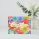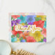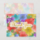 Faux Gold foil Handwritten Script Thank you on a fun, bright and multicolor watercolor flowers painted by Suki’s. Large flowers fill the entire design creating an abstract medley of colours, yet if viewed closely each flower shows its shape.