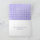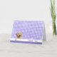 Golden retriever on white and purple gingham pattern with thank you text.