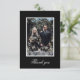Thank you cards for gothic wedding, featuring a modern black and white design and picture of a couple.