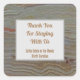 Say thank you to your vacation rental guests with this inexpensive appreciation sticker. The photo featured on this beautiful square sticker captures a brown and grey striped piece of banded onyx. The horizontal stripes create a natural and neutral background for your words of appreciation which appear inside a light grey rectangle. "Thank you for staying with us" and your home's name can quickly and easily be customised to suit your needs.