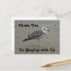 Set your house rental apart from your competition with this inexpensive guest thank you. This postcard features a lone seagull standing on the warm sand that is dotted with small pebbles and shells. A photo of this beach bird was digitally enhanced to resemble a painted seagull. "Thank you for staying with us" as well as the text on the back can easily and quickly be customised. There is plenty of room on the back of this postcard to include your home name, location, or your name.