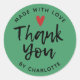 A personalised cute "made with love Thank You" sticker on a green coloured background. Make it yours by adding your own name. A pretty finishing touch for your packages. Perfect to thank customers in your homemade crafting business. Designed for you by Blackberry Boulevard.