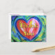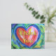 The postcard message notes, "Thank You." The painting features a colourful red heart with glimmers of white and gold accents. The heart is outlined in blue and has a soft green background. This heart painting is a tribute to holding hope within your heart when the sad blues surround you but pushing through for green renewal.