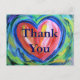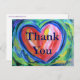 The postcard message notes, "Thank You." The painting features a colourful red heart with glimmers of white and gold accents. The heart is outlined in blue and has a soft green background. This heart painting is a tribute to holding hope within your heart when the sad blues surround you but pushing through for green renewal.