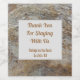 Welcome your vacation rental guests with this inexpensive yet elegant wine bottle label. The photo featured on this beautiful label captures a brown and grey striped piece of driftwood that was found washed up on a California beach. The horizontal stripes create a natural and neutral background for your words of welcome which appear inside a light grey rectangle. "Thank You for Staying with Us" and your home's name can quickly and easily be customised to suit your needs.
