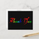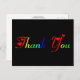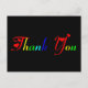An elegantly designed Thank You postcard with vibrant rainbow colours against an elegant black background with red hearts. Super fun way to say thank you.