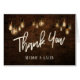 This modern thank you card complements the other designs in this industrial-themed collection. The handwriting type-based graphic reads "Thank You" in big, bold letters, with your names below in a pretty, modern all-caps serif font below. The old, dark brick wall background image is overlaid with warm, vintage Edison lights. Inside is a place holder message written from the perspective of a bride and groom - you may use, edit, or remove it entirely. Please do not hesitate to reach out to me for special requests or for assistance with customisation.