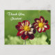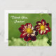 Red dahlias under sun and text "Thank you, Jessica!" Add your name by replacing this text.