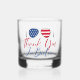 Thank You Joe Biden whiskey glass written in red and blue cursive letters under a cool pair of sunglasses with the American flag in the shades. Democrats show your thanks to our president for doing so much for our country with this commemorative design.