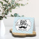 Personalised A BIG THANK YOU theme Little (Lil') man baby shower note cards with PHOTO / PICTURE. Blue turquoise script letters with 'from little man' with moustache. Get matching stickers!