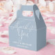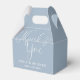 This dusty blue minimalist elegant script wedding favour box can be personalised with your information in chic typography. Designed by Thisisnotme©