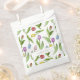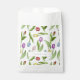 The product design features a pattern of colourful tulip flowers in purple, red, pink, blue, and yellow. This botanical illustration with personalised text and back colour makes elegant modern and unique favour bags for bridal shower, wedding, birthday, Easter, Mother’s Day, and more - THANK YOU.