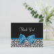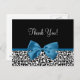 Personalise this trendy black and white leopard print pattern thank you postcard, with a stylish cobalt or Mykonos Blue ribbon tied into a cute girly bow, by adding a custom message to customisable text area. This modern style post card is part of the Animal Print Fall Fashion Collection. Flat printed image, not actual ribbon.