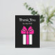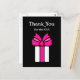 A modern pink and black thank you for the gift postcard with a girly white present wrapped in a cute hot pink bow. Personalise the back of this thank you card by adding a special message to the custom text template area.