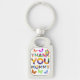 Thank You Mummy decorative text-image against the white background. Six colourful butterflies float around the image or sit on a letter. A customisable colourful metal keychain to be given as a small gift on Mother's Day, birthday, or any other occasion. You can change butterflies and place some photos instead of them. Please, use the "Personalise" button to change the size of the text-image, to relocate butterflies, or to change the colour of the background. Have fun, customise and buy one, and be happy!