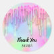 Thank You Name Pink Holograph Drips Unicorn Classic Round Sticker