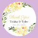 Thank You, Names & Date Yellow W/C Flowers Wedding Classic Round Sticker