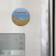 Give an inexpensive gesture of thanks with this refrigerator magnet featuring a landscape photo that captures the rolling hills and sand dunes with the rolling waves and blue horizon in the distance. The close dunes are covered with green coastal plants. The ocean displays beautiful shades of blue. "Thank You" can quickly and easily be customised if you desire.