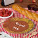 Host an appreciation meal or picnic and send a message of thanks with these paper plates featuring beautiful autumn colours of orange, yellow, and brown. The background displays thin horizontal lines in fall colours that resemble straw or dried grass. A large circle in the centre in rusty orange provides the solid background for "Thank You" which can easily be customised if you desire.