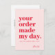 Modern, minimalist design in soft pink and red for your business Order Thank You card. Personalise this design for yourself!