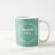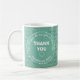Stylish aqua green THANK YOU HEALTHCARE HERO mug with curved text that says FOR ALL YOU DO TO GET US THROUGH with heart graphic. All main text is CUSTOMIZABLE, so you can personalise with other text or add the name of your own particular healthcare hero. Matching gifts available.