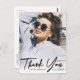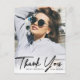 a modern photo overlay card design with a custom photo of the graduate and black script lettering. Feel free to personalise the image and thank you message at the back.