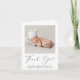 Minimal baby girl or baby boy birth announcement and thank you folded card featuring your newborn's photo and "Thank You" in an elegant contemporary script with a heart swash. Personalise with his or her full name, arrival date and birth stats in simple modern typography. On the inside, add an additional photo and your customised thank you and announcement message, with room for a handwritten note if desired..