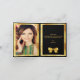 An elegant black background and a faux gold bow and ribbon with golden glitter and sparkle. On front a hand lettered style script and the text: Thank You!