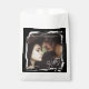 Black and white modern abstract photo template thank you for celebrating with us favor bags. Prety goodie bag you can stuff with candy and favors for your wedding guests at the reception.