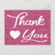 Handwritten Thank You notes are a great way to brighten someone's day! This charming post card features a white Thank You greeting and a heart hightlighted against a sparkle pink fuchsia background.