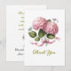 This elegant thank-you card captures the essence of heartfelt gratitude with its delicate design. Featuring soft pink hydrangeas in full bloom, paired with lush green foliage, the card exudes a sense of natural beauty and romance. A graceful pink ribbon gently ties the design together, adding a touch of charm and sophistication. On the back of the card is the warm message, expressing your thanks for guests who shared in your wedding day celebration," written in a refined, flowing script.