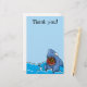 Some customisable stationary perfect for writing thank you letters on featuring a cartoon great white shark pulling a present from his mouth in a turbulent sea.