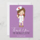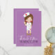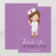 Thank You Purple Script Brunette Cartoon Nurse Card
