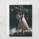 Simple and clean wedding thank you card featuring a text that says "thank you" in a swirly retro font.