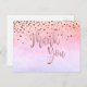 Thank You Rose Gold Pink Glitter Confetti Postcard