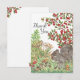 This delightful Thank You note card features my watercolor squirrel and foliage artwork on the front and berry sprigs on the note side, all on a white background. The cute grey squirrel is quite content in a forest floor strewn with berries, acorns, ferns, mushrooms and grasses. Animal and nature lovers will enjoy this card any time of year. Whimsical, unique artwork & design by Tuzi Williams.