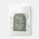 These Thank You Sage Green Seashells Doodles Favor Bags showcase a serene sage green background decorated with whimsical doodles of seashells, starfish, hearts, and sparkles for a soft and elegant coastal vibe. On the front, a sage green arch outlined with a thin white inner arch frames your personalized message. Inside, “Thank You” sits at the top, followed by editable text for the bride’s name, “Bridal Shower,” a sweet seashell illustration, and the event date. Ideal for holding bridal shower favors, treats, small gifts, or welcome bag goodies. All colors and text are customizable to suit your theme.