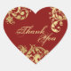 Seal your wedding envelopes with this elegant and delicate, beautiful Red and gold shimmer floral swirl thank you heart shaped sticker.