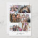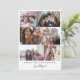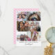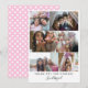 Thank you card printed with a photo collage of five photos from your sleepover or birthday party. Thank you for coming in neat letters. Love, your name in a pretty script. The back features pink and white polka dots. Girl's birthday party thank you cards personalised with photos of the birthday girl and her friends to cherish the memories of the fun day together. Keepsake and thank you card in one personalised with photos of you and your guests.