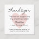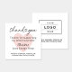 A sweet square thank you card for small business owners featuring a modern script "thank you" with a heart accent and a soft blush pink heart containing a personalized message for your customers. The back includes space for your business logo, website, or coupon code. Perfect for boutique owners, handmade shops, and online small business packaging inserts. The name, business details, and logo fields are fully customizable.