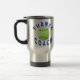 A great photograph of a new lime green softball and the words, "Thanks Coach" are used to design gift thank you travel mugs for your softball coach.