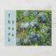 Say "thank you" with this inexpensive postcard featuring a photo of spring pine tree berries. These round berries are a beautiful blue grey colour growing in clusters along the green pine branches. "Thank You" appears against a matching blue background and can easily be customised to suit your needs. The back has been left blank to allow you to personalised with text or photos.