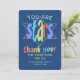 A colourful 'you are stars' flat thank you card. This modern typographic card is the perfect way to say thanks in style to support staff, a team or volunteer group. Personalise with a custom name and message.