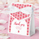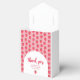 Thank you, Strawberry Baby Shower Favour Boxes are designed with a clean arc and a strawberry pink and red background pattern, a cute modern way to appreciate your guests with a thank you favour.