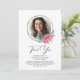 Thank You Sympathy Photo Funeral Bereavement Memorial Card features elegant pink watercolor flowers with green foliage and a gold circle frame surrounding a photo of your loved one. Personalised with your message below. Photo tip: use a photo with person in centre of the photo. Designed for you by Evco Studio www.zazzle.com/store/evcostudio