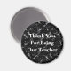 This teacher appreciation magnet features a marbled background in black and white. "Thank you for being our teacher" is featured in the centre in white and can be customised to suit your needs. This is an inexpensive magent that makes a unique appreciation gift for your female or male teacher during teacher appreciation week or the end of the year.