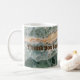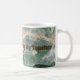 This teacher appreciation mug features a close-up photo of a piece of fluorite mineral. This beautiful gemstone features stunning green tones and a yellow ribbon of horizontal colour along with crystal webbing. The resulting pattern creates an abstract nature design to support the words of thanks. "Thank you for being my teacher" may be customised to suit your needs.