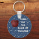The end of the year, holidays, or teacher appreciation week are all the perfect times to say thank you to a special teacher. A bright red mosaic apple appears along with the words, "thank you for being my teacher" on this inexpensive keychain. The background features a dark blue colour dotted with random light grey dashes. The text can easily be customised to say anything you wish to express.