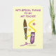A cartoon paintbrush and crayon decorate this thank you card to your special art teacher. For matching items, type "penguincornerstore paintbrush" into the Zazzle search bar.